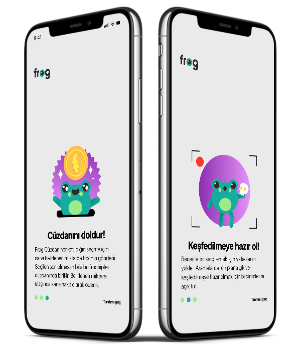 Üstelik deneme çekimi sırasında seninle diyalog yaparak, repliklerini ekrana getirerek seni destekler ve motive eder. Her deneme çekimi için para kazanırsın. Ayrıca, senin için opsiyon ve yönetmen görüşmelerini organize eder. FROG, sadece oyuncular için değil, modeller, dansçılar, müzisyenler ve diğer birçok sanat dalından insanlar için de kullanıcı dostu arayüzü ve geniş yetenek keşfi özelliği ile kariyerlerini geliştirmelerine yardımcı olur. FROG'u kullanarak, kendini tanıtabilir, yeteneklerini sergileyebilir ve doğrudan iş veya proje teklifleri alabilirsin. FROG, sadece bir uygulama değil, aynı zamanda bir Yetenek Ajansıdır. Sen de FROG ile projelerde yer alırsın ve aynı zamanda oyunculuk kariyerinde de büyük bir adım atarsın!